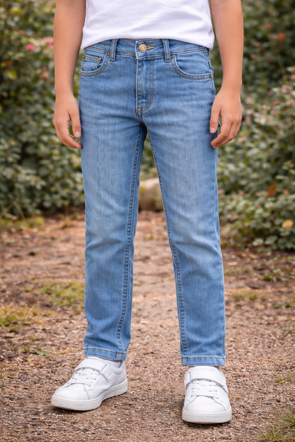 Класически детски дънки за момче, подходящи за ежедневието и училище. Моделът е изработен от качествен деним в светлосин цвят с лек ефект на износване, което придава модерен и изчистен външен вид.