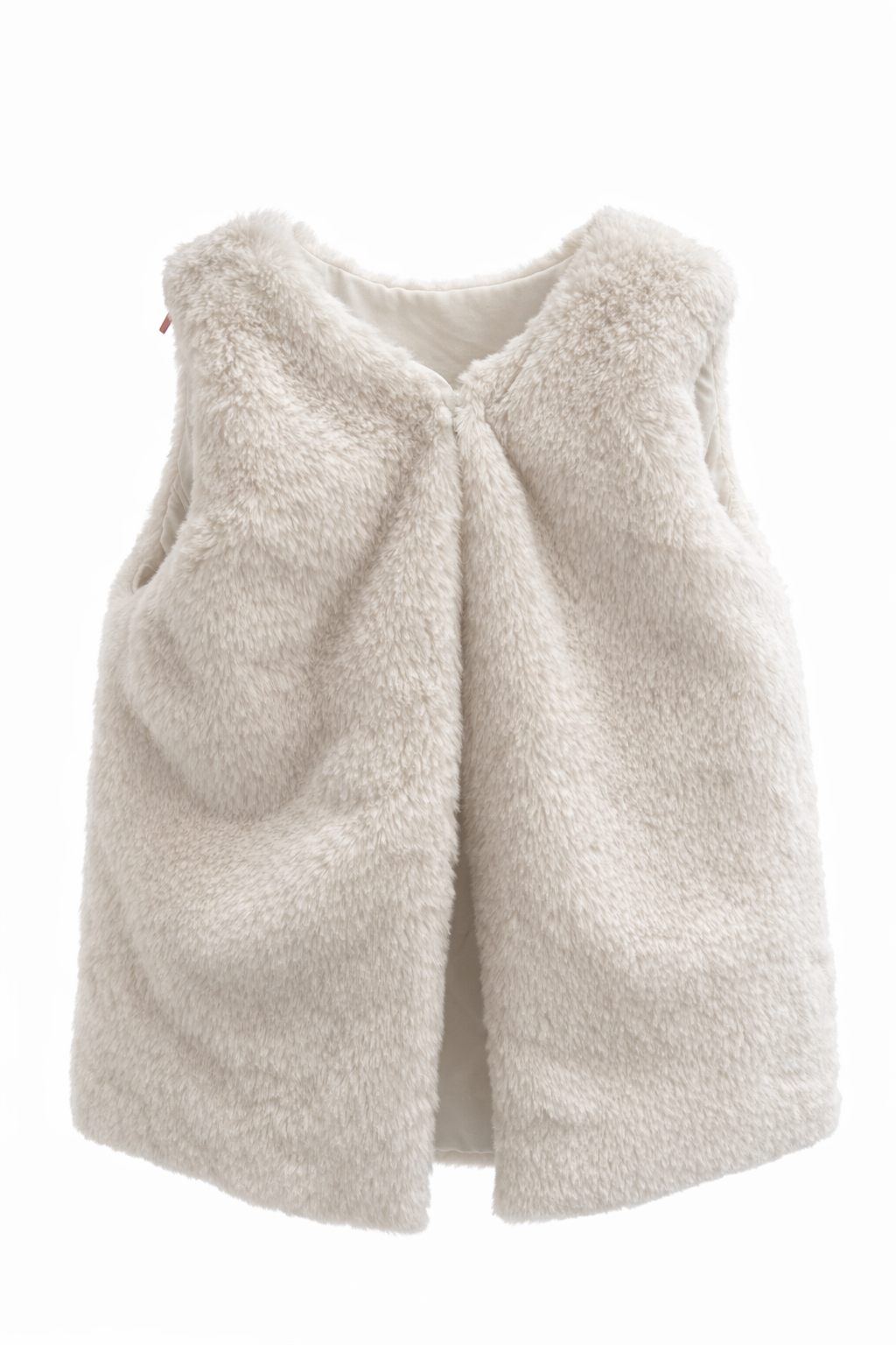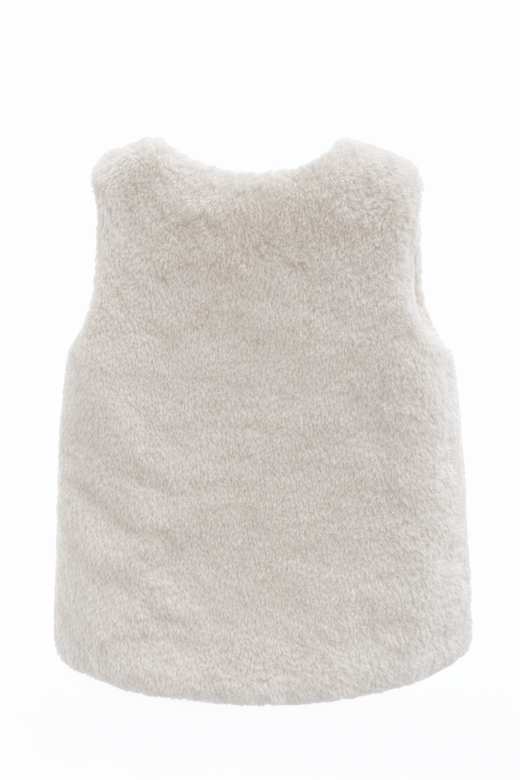 Стилен и изключително мек бебешки елек, изработен от висококачествена пухкава материя с фина вътрешна подплата, осигуряваща комфорт и топлина през по-хладните дни. Моделът се отличава с изчистен дизайн и прецизна изработка, което го прави подходящ както за ежедневието, така и за по-специални поводи.