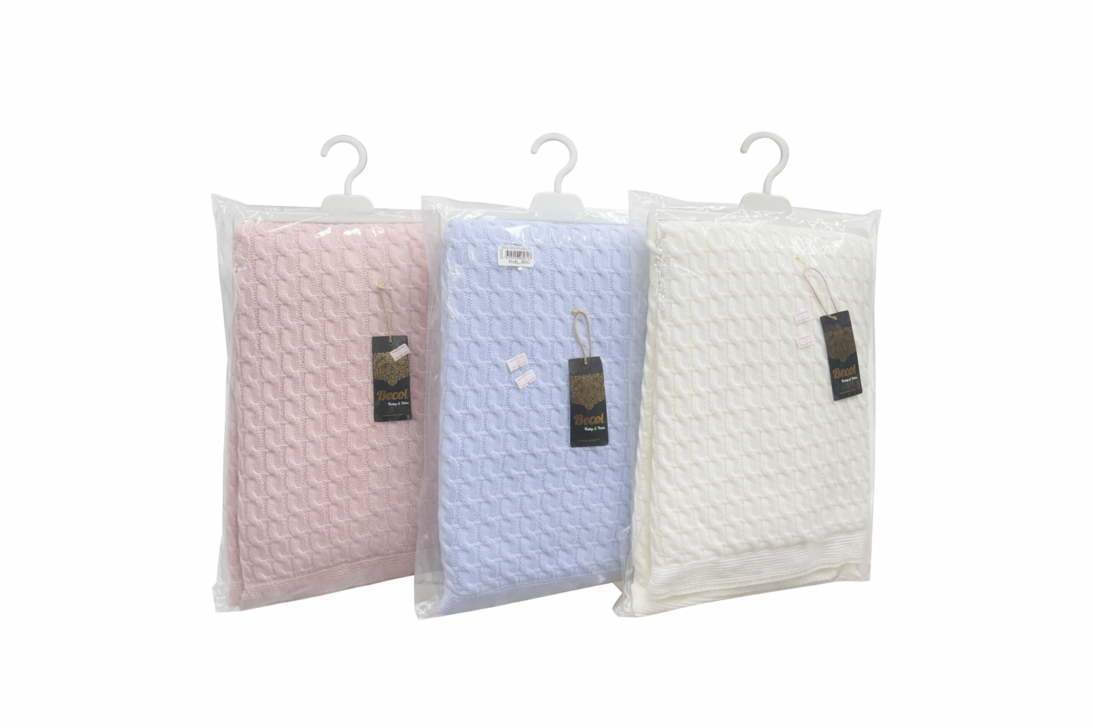 Одеялото се отличава с фин релефен плетен дизайн и практична опаковка, което го прави отличен избор и за подарък при изписване или специален повод.